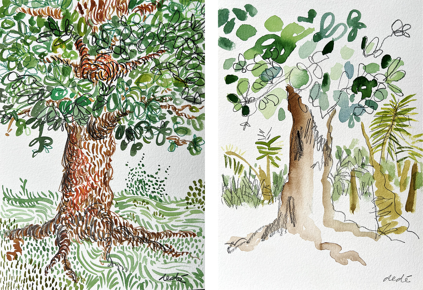 Dia 20 de março começa a primavera em Londres, onde Dedé Laurentino vive e trabalha, e o outono no Brasil que mora nele. Nas árvores de suas aquarelas estão os tons das novas estações em cada fatia do planeta.